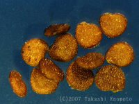 外形 circle 表面光沢 absent 表面の突起 foveolate 畝など absent 翼 absent 色 yellowish brown サイズ 1.4-1.6mm このデータベースは 文部科学省科学技術振興調整費 (重要課題解決型プロジェクト[外来植物のリスク評価と蔓延防止策])の助成と科学研究費補助金の交付を受けて作成されました。