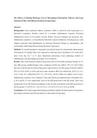 | Title Alternative | ブレオマイシン誘発肺傷害マウスに対する水素ガス吸入のマクロファージの分極、線維化および肺機能への影響