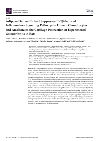 | Title Alternative | 濃縮脂肪由来抽出液は、ヒト軟骨細胞においてIL-1βに誘導される炎症性シグナル経路を抑制し、変形性関節症モデルラットの軟骨破壊を改善する