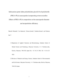 | Abstract | Reverse micelles are thermodynamically stable systems, with a capacity to encapsulate hydrophilic molecules in their nanosized core, which is smaller than the core generally obtained with water-in-oil-emulsion droplets. Herein, we present a simple technique for the preparation of poly(ethylene glycol)-block-polylactide (PEG-b-PLA) nanocapsules encapsulating a hydrophilic photosensitizer (indocyanine green, ICG), which exploits reverse micelle formation and subsequent emulsion-solvent diffusion. We establish the effect of the PEG-b-PLA composition and the co-surfactant volume on the diameter and water content of the reverse micelles. We demonstrate that the composition of PEG-b-PLA affects also the diameter and encapsulation efficiency of the resulting nanocapsules. We show that the ICG-laden nanocapsules fabricated under the most optimal conditions have a diameter of approximately 100 nm and an ICG encapsulation efficiency of 58%. We believe that the method proposed here is a promising step towards the preparation of hydrophilic drug-laden polymer nanocapsules with a small diameter and therefore suitable for use in drug delivery applications based on enhanced permeability and retention (EPR) effect-driven passive targeting.