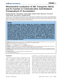 | Abstract | Accumulation of protoporphyrin IX (PpIX) in malignant cells is the basis of 5-aminolevulinic acid (ALA)-mediated photodynamic therapy. We studied the expression of proteins that possibly affect ALA-mediated PpIX accumulation, namely oligopeptide transporter-1 and -2, ferrochelatase and ATP-binding cassette transporter G2 (ABCG2), in several tumor cell lines. Among these proteins, only ABCG2 correlated negatively with ALA-mediated PpIX accumulation. Both a subcellular fractionation study and confocal laser microscopic analysis revealed that ABCG2 was distributed not only in the plasma membrane but also intracellular organelles, including mitochondria. In addition, mitochondrial ABCG2 regulated the content of ALA-mediated PpIX in mitochondria, and Ko143, a specific inhibitor of ABCG2, enhanced mitochondrial PpIX accumulation. To clarify the possible roles of mitochondrial ABCG2, we characterized stably transfected-HEK (ST-HEK) cells overexpressing ABCG2. In these ST-HEK cells, functionally active ABCG2 was detected in mitochondria, and treatment with Ko143 increased ALA-mediated mitochondrial PpIX accumulation. Moreover, the mitochondria isolated from ST-HEK cells exported doxorubicin probably through ABCG2, because the export of doxorubicin was inhibited by Ko143. The susceptibility of ABCG2 distributed in mitochondria to proteinase K, endoglycosidase H and peptide-N-glycosidase F suggested that ABCG2 in mitochondrial fraction is modified by N-glycans and trafficked through the endoplasmic reticulum and Golgi apparatus and finally localizes within the mitochondria. Thus, it was found that ABCG2 distributed in mitochondria is a functional transporter and that the mitochondrial ABCG2 regulates ALA-mediated PpIX level through PpIX export from mitochondria to the cytosol.