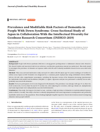 | Citation | Takenoshita, S., Terada, S., Inoue, T., Kurozumi, T., Takaki, M., Kuwano, R., and Suemitsu, S. (2026) Prevalence and Modifiable Risk Factors of Dementia in People With Down Syndrome: Cross-Sectional Study of Japan in Collaboration With the Intellectual Diversity for Goodness Research Consortium (INDIGO-2019). Journal of Intellectual Disability Research, 70: 329–336. https://doi.org/10.1111/jir.70075.