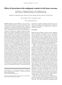 Citation | Nakata E, Fujiwara T, Katayama H, Itano T, Kunisada T and Ozaki T: Effect of bacterium in the malignant wounds of soft tissue sarcoma. Oncol Lett 24: 345, 2022