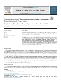 Case presentation: We report a 10-year-old boy with no past medical history with necrosis of the ascending colon after resuscitation from hemorrhagic shock due to femoral vein injury caused by a bicycle handlebar injury. Contrast-enhanced computed tomography demonstrated hypodense thickening of the ascending colon wall and intrahepatic portal gas. Exploratory laparoscopy demonstrated necrosis of the ascending colon and paralysis of the intestines. Conclusion: Colonic necrosis secondary to hemorrhagic shock in children without evidence of pre-existing cardiovascular disease is extremely uncommon. Lack of familiarity with this condition may cause serious complications. Clinicians must be aware of this disease to promptly diagnose and aggressively treat the condition early. |