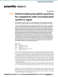 | Abstract | To promote antimicrobial stewardship, we studied antimicrobial prescription rates for uncomplicated cystitis, a common outpatient disease requiring antibiotic treatment. This multicenter retrospective study was performed from January 1, 2018, to December 31, 2020, in Japan, targeting outpatients aged >= 20 years whose medical records revealed International Classification of Diseases (ICD-10) codes suggesting uncomplicated cystitis (N300). The data of 1445 patients were collected and that of 902 patients were analyzed. The overall median patient age was 71 years and a proportion of those aged less than 50 years was 18.8% with a female dominance (82.6%). Antimicrobials were prescribed for 884 patients (98.0%) and a total of 623 patients (69.1%) were treated with broad-spectrum drugs, including fluoroquinolones (36.0%), third-generation cephalosporins (29.9%) and faropenem (3.1%). A logistic regression model revealed that the broad-spectrum agents were significantly prescribed for the older patients, male patients, and those who visited internists. Recurrence was observed in 37 (4.1%) cases, and the multivariate analysis suggested any of age, sex, or antimicrobial types were not associated with the recurrence. Collectively, approximately two-thirds of antimicrobials prescribed for uncomplicated cystitis were broad-spectrum agents. The present data would be an indicator for antimicrobial prescriptions in uncomplicated cystitis in Japan.