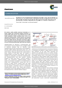 | Abstract | We introduce readily available ammonium hemiaminals as O-transfer reagents and commercially available acetonitriles as a primary amide enolate precursor. The combination serves as an amide enolate equivalent, thereby providing one-pot access to alpha-substituted indolylacetamides. A broad substrate scope and good functional group tolerance as well as gram-scale synthesis make this protocol highly attractive. Mechanistic experiments suggest that the cyano group is trapped by a hydroxy group of hemiaminals en route to the desired primary amides under metal-free conditions.
