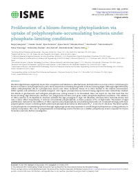 | Citation | Seiya Fukuyama, Fumiko Usami, Ryuichi Hirota, Ayano Satoh, Shizuka Ohara, Ken Kondo, Yuki Gomibuchi, Takuo Yasunaga, Toshimitsu Onduka, Akio Kuroda, Kazuhiko Koike, Shoko Ueki, Proliferation of a bloom-forming phytoplankton via uptake of polyphosphate-accumulating bacteria under phosphate-limiting conditions, ISME Communications, Volume 5, Issue 1, January 2025, ycaf192, https://doi.org/10.1093/ismeco/ycaf192