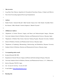 | Title Alternative | 個別化タクロリムス投与のためのLong Short-Term Memoryアルゴリズム:肺移植後の単純かつ効果的な時系列予測アプローチ