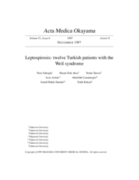 | Abstract | Twelve cases of leptospirosis followed by the Infectious Diseases Clinic of the Cukurova University Medical School, Adana, Turkey, between January 1994 and November 1995 are reported. Included are their clinical manifestation, laboratory findings and serotype. Nine men and three women with an average age of 40.4 years were studied. Symptoms, clinical manifestations, laboratory findings and treatment of the disease are evaluated. All of the patients had fever and chills and the following symptoms: nausea and vomiting (91.6%), lower back pain and myalgia (58.3%), headache (50%), epistaxis (16.6%) and confusion (25%). The predominant clinical findings were jaundice (91.6%), hepatomegaly (41.6%), dyspnea (25%), conjunctival suffusion (33%), and nuchal rigidity (33%). Diagnosis was based on dark-field examination of the blood, cerebrospinal fluid and urine specimens. Also, microscopic agglutination tests (MAT) were carried out for serodiagnosis. MAT showed L. inter-rogans serovar icterohaemorrhagiae in 11 cases and L. interrogans serovar grippomosocova in one case. There was cross reaction with L. biflexa patoc in all cases. Agglutinations were tested in the same specimens twice and confirmed in the Microbiology Laboratory of the Etlik Veterinary Research Institute in Ankara. All cases were treated with penicillin and doxycycline. In the end; 83.3% of the patients were cured and 16.6% died due to hepatorenal failure. |