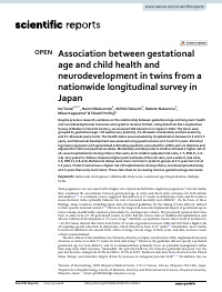 | Citation | Tamai, K., Matsumoto, N., Takeuchi, A. et al. Association between gestational age and child health and neurodevelopment in twins from a nationwide longitudinal survey in Japan. Sci Rep 15, 40608 (2025). https://doi.org/10.1038/s41598-025-24186-2
