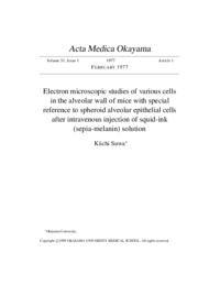 | Abstract | The effect of an intravenous injection of squid-ink (sepia-melanin) solution on adult mouse spheroid alveolar epithelial cells was observed by the electron microscope. Sepia-melanin particles were seen in all alveolar wall cells examined that seems to suggest the entrance of sepia-melanin particles into the spheroid alveolar epithlial cells from the alveolar blood capillary. In cases of large penetrations of sepia-melanin particles into spheroid alveolar epithelial cells, a greater increase was found in the intramitochondrial granules. In addition, the so-called inclusion body believed to be formed by the degeneration of mitochondria had very high electron density and its quantity was abundant. On the contrary, in cases where the quantity of sepia-melanin entrance into the spheroid alveolar epithelial cell was small, neither an increase of intramitochondrial granules, an increase of the electron density nor an increase in the quantity of specific inclusion body was found. |