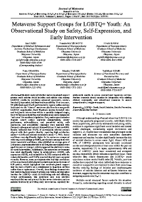 | Citation | Hasei, J., Matsumoto, Y., Kawai, H., … Okahisa, Y. (2025). Metaverse Support Groups for LGBTQ+ Youth: An Observational Study on Safety, Self-Expression, and Early Intervention. Journal of Metaverse, 5(2), 156-167. https://doi.org/10.57019/jmv.1639701