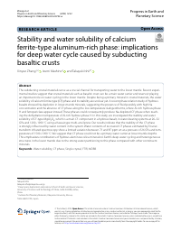 Citation | Zhang, X., Mashino, I. & Ishii, T. Stability and water solubility of calcium ferrite-type aluminum-rich phase: implications for deep water cycle caused by subducting basaltic crusts. Prog Earth Planet Sci 12, 32 (2025). https://doi.org/10.1186/s40645-025-00702-w