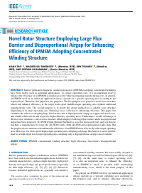 | Abstract | Interior permanent magnetic synchronous motors (IPMSMs) adopting concentrated windings have been widely used in industrial applications. To reduce operating costs, it is an important issue to enhance the efficiency of an IPMSM as much as possible while maintaining manufacturing costs. In general, an IPMSM used for an industrial application always operates in a specific operating area according to the required load. Therefore, this paper has two purposes. The first purpose is to propose a novel rotor structure which can enhance efficiency at the target wide-speed middle-torque operating area without additional manufacturing costs. The second purpose is to clarify the design method for a suitable rotor structure depending on its target operating area. Reducing losses is the key to enhancing efficiency. This paper first examines the effects of adopting large flux barriers and a disproportional airgap on copper and iron losses, and clarifies their merits and respective high-efficiency operating areas. Furthermore, to take advantage of the two rotor structures, a novel rotor structure which employs both large flux barriers and a disproportional airgap has been proposed. 2D-FEM (Finite-Element Method) is used for discussion first, and a prototype machine is manufactured to verify the 2D-FEM results. Both 2D-FEM and experimental results show that the proposed rotor structure can enhance the efficiency of an IPMSM most effectively at the target operating area. Moreover, for a low-speed high-torque operating area, adopting only large flux barriers is most suitable. And for a high-speed low-torque operating area, adopting only a disproportional airgap is most suitable.