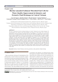 | Abstract | The use of nutrient-rich feed in shrimp farming in Central Vietnam has led to high nitrogen (N) and phosphorus (P) contents in the pond sediment. The objectives of the study were to assess the effectiveness of biochar-sediment microbial fuel cells (BC-SMFCs) in suppressing P and N release from two types of sediment in intensive (Int) and extensive (Ext) pond drainages in Central Vietnam. Single chamber SMFCs were set up and operated under open or closed-circuit (no SMFC or SMFC) conditions. Coconut shell biochar (BC) was amended to sediments at 1%. For Int-sediment, total phosphorus (TP) release was reduced by no BC-SMFCs through co-precipitation with Fe. On the other hand, BC-SMFCs did not suppress TP release because P was released from BC and organic matter decomposition was enhanced in the sediment. Application of BC enhanced organic N mineralization in the sediment. Nitrification and denitrification occurred in the overlying water, reducing mineral N concentrations. For Ext-sediment, BC addition and SMFC conditions did not affect TP and total nitrogen (TN) release because of low initial organic matter content, and less reductive condition. Our study suggested that the effect of SMFCs was masked by BC which released more P from Int-sediment to the water.