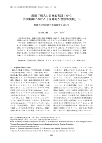 本研究の目的は,教職大学院の教育実践研究を通して,教師「個人の省察的実践」から学校組織における「協働的な省察的実践」へと至るプロセスの検証を試みることである。 その結果,現職教員学生「個人の省察的実践」を起点にして「協働的な省察的実践」を促すことで学校の組織ルーティンが変化し,組織学習の成立を確認することができた。さらに,学校において信奉理論とみなされがちな「目指す子ども像」は,その策定プロセスに教師たちが関与し,彼らの具体的な授業実践に取り込まれることで使用理論として記憶され,組織成員の振る舞いを方向付ける公的地図となりうることが示された。同様に,開発された授業計画シートと授業記録シートも新たな公的地図としての有効性が示唆された。