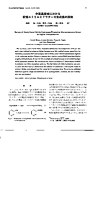 We surveyed some novel nitrile hydratase-producing microorganisms through the enrichment culture technique at higher temperatures. We isolated several spore-forming filamentous bacteria from soil samples. One of them, strain 45A40 exhibited the highest nitrile hydratase activity. Based on taxonomical studies, strain 45A40 was identifind to be genus Streptomyces. It was the first example of a Streptomyces strain exhibiting high nitrile hydratase acitivity. We optimized the culture conditions of Streptomyces 45A40 to enhance the nitrile hydratase activity. The formation of nitrile hydratase was constitutive and was highly enhanced by the addition of cobalt ions. The enzyme acted on various nitriles and showed low Km value for 3-cyanopuridine. The enzyme exhibited tolerance against a high concentration of 3-cyanopyridine ; however, its heat stability was not outstanding.