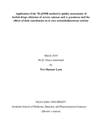 | タイトル(別表記) | 1H-qNMR法のショウブ属植物根茎由来生薬の品質評価への応用とアセチルコリンエステラーゼin vitro活性に対する含有成分の効果