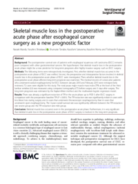 Skeletal muscle loss occurred even in the postoperative acute phase. Furthermore, it is very significant that skeletal muscle loss in the postoperative acute phase of ESCC surgery is involved in the long-term prognosis.
