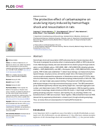 | Citation | Li Y, Shimizu H, Nakamura R, Lu Y, Sakamoto R, Omori E, et al. (2024) The protective effect of carbamazepine on acute lung injury induced by hemorrhagic shock and resuscitation in rats. PLoS ONE 19(10): e0309622. https://doi.org/ 10.1371/journal.pone.0309622