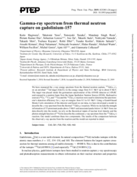 | 抄録 | We have measured the -ray energy spectrum from the thermal neutron capture, Gd, on an enriched Gd target (GdO) in the energy range from 0.11 MeV up to about 8 MeV. The target was placed inside the germanium spectrometer of the ANNRI detector at J-PARC and exposed to a neutron beam from the Japan Spallation Neutron Source (JSNS). Radioactive sources (Co, Cs, and Eu) and the Cl(,) reaction were used to determine the spectrometers detection efficiency for rays at energies from 0.3 to 8.5 MeV. Using a Geant4-based Monte Carlo simulation of the detector and based on our data, we have developed a model to describe the -ray spectrum from the thermal Gd(,) reaction. While we include the strength information of 15 prominent peaks above 5 MeV and associated peaks below 1.6 MeV from our data directly into the model, we rely on the theoretical inputs of nuclear level density and the photon strength function of Gd to describe the continuum -ray spectrum from the Gd(,) reaction. Our model combines these two components. The results of the comparison between the observed -ray spectra from the reaction and the model are reported in detail.