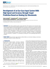 | 抄録 | In this study, a method to predict a target on the basis of the trajectory of eye movements and to increase the pointing speed while maintaining high predictive accuracy is proposed. First, a predictive method based on ballistic (fast) eye movements (Approach 1) was evaluated in terms of pointing speed and predictive accuracy. In Approach 1, the so-called Midas touch problem (pointing to an unintended target) occurred, particularly when a small number of samples was used to predict a target. Therefore, to overcome the poor predictive accuracy of Approach 1, we developed a new predictive method (Approach 2) using homing (slow) eye movements rather than ballistic (fast) eye movements. Approach 2 overcame the disadvantage (inaccurate prediction) of Approach 1 by shortening the pointing time while maintaining high predictive accuracy.