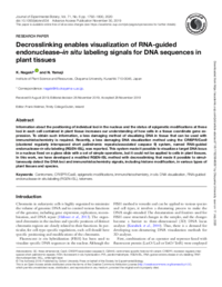 | 抄録 | Information about the positioning of individual loci in the nucleus and the status of epigenetic modifications at these loci in each cell contained in plant tissue increases our understanding of how cells in a tissue coordinate gene expression. To obtain such information, a less damaging method of visualizing DNA in tissue that can be used with immunohistochemistry is required. Recently, a less damaging DNA visualization method using the CRISPR/Cas9 (clustered regularly interspaced short palindromic repeats/associated caspase 9) system, named RNA-guided endonuclease-in situ labeling (RGEN-ISL), was reported. This system made it possible to visualize a target DNA locus in a nucleus fixed on a glass slide with a set of simple operations, but it could not be applied to cells in plant tissues. In this work, we have developed a modified RGEN-ISL method with decrosslinking that made it possible to simultaneously detect the DNA loci and immunohistochemistry signals, including histone modification, in various types of plant tissues and species.