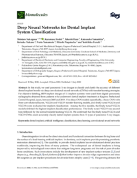 | 抄録 | In this study, we used panoramic X-ray images to classify and clarify the accuracy of different dental implant brands via deep convolutional neural networks (CNNs) with transfer-learning strategies. For objective labeling, 8859 implant images of 11 implant systems were used from digital panoramic radiographs obtained from patients who underwent dental implant treatment at Kagawa Prefectural Central Hospital, Japan, between 2005 and 2019. Five deep CNN models (specifically, a basic CNN with three convolutional layers, VGG16 and VGG19 transfer-learning models, and finely tuned VGG16 and VGG19) were evaluated for implant classification. Among the five models, the finely tuned VGG16 model exhibited the highest implant classification performance. The finely tuned VGG19 was second best, followed by the normal transfer-learning VGG16. We confirmed that the finely tuned VGG16 and VGG19 CNNs could accurately classify dental implant systems from 11 types of panoramic X-ray images.