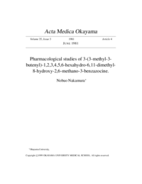 | 抄録 | 3-(3-methyl-3-butenyl)-1,2,3,4,5,6-hexahydro-6, 11-dimethyl-8-hydroxy-2,6-methano-3-benzazocine (KF-1820) is a derivative of benzomorphan and is different from pentazocine only in the site of the double bond. KF-1820 showed potent analgesic activity in all tests performed. KF-1820 was 6 to 12 times and 30 to 40 times more potent than morphine and pentazocine, respectively, when administered subcutaneously. KF-1820 had little or no narcotic antagonist property. Physical dependence liability tests indicated that KF-1820 may be a little less, or as liable as, pentazocine to produce physical dependence. ID50 values of KF-1820, pentazocine and morphine for depression of contractions of isolated guinea pig ileum to coaxial stimulation correlated well with their analgesic activities in the rodent. The dissociation equilibrium constant of KP-1820 confirmed the in vivo finding that KF-1820 had little or no narcotic antagonist property. |