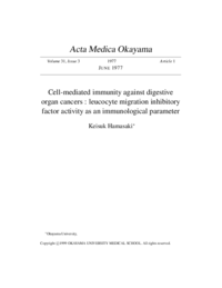 | 抄録 | The present study was conducted to investigate the usefulness of the direct leucocyte migration agarose method for studying cell-mediated immunity in vitro. Comparative studies of the purified protein derivative (PPD) skin test and the leucocyte migration inhibition test (LMIT) in which PPD was used as test antigen indicated a significant qualitative and a weak quantitative correlation between these two tests. Furthermore a positive correlation was found between the LMIT and the macrophage migration inhibition test (MIT) using ultrasonicated authochthonous tumor antigen. Comparative studies of the LMIT, MIT, PPD skin and DNCB tests on the same patients showed that cases responding positively to the the PPD skin and DNCB tests tended to respond positively to the LMIT and MIT. Patients with digestive organ cancers were examined by the LMIT. With the advance of cancer, decreased positive test test rates were found. After gastric cancer operations the LMIT findings were divided into two groups: one type changed from positive to negative, and the other type changed from negative to positive. The former response was suggestive of a successful operation, and the latter response was suggestive of a non-curative operation. These results indicated that the direct leucocyte migration inhibition agarose test was useful investigating cell-mediated immunity. |