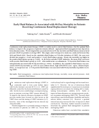 抄録 | Continuous renal replacement therapy (CRRT) is widely used to control fluid balance, but the optimal fluid balance to improve the prognosis of patients remains debated. Appropriate fluid management may depend on hemodynamic status. We investigated the association between 90-day mortality and fluid balance/mean arterial pressure (MAP) in patients receiving CRRT. This single-center retrospective study was conducted between May 2018 and March 2021. Based on the cumulative fluid balance at 72 h after initiation of CRRT, the cases were divided into negative (< 0 mL) and positive (> 0 mL) fluid balance groups. Ninety-day mortality was higher in the positive fluid balance group (p=0.009). At 4 h before and after CRRT initiation, the mean MAP was lower in the positive fluid balance group (p<0.05). After multivariate cox adjustment, 72-h positive fluid balance was independently associated with 90-day mortality (p=0.004). In addition, the cumulative fluid balance was associated with 90-day mortality (p<0.05) in cases without shock, high APACHE II score, sepsis, dialysis dependence, or vasopressor use. A 72-h positive fluid balance was associated with 90-day mortality in patients receiving CRRT.