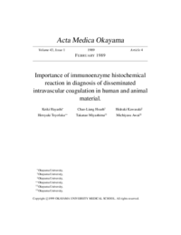 抄録 | Renal tissues from 208 human necropsies were observed histologically for disseminated intravascular coagulation (DIC). The tissues were stained with hematoxylin-eosin, Mallory's phosphotungstic acid hematoxylin (PTAH) and cationic ferric hydroxide colloid stabilized with cacodylate (Fe-Cac), and tested by immunoenzyme histochemical (IEH) reaction for fibrin-related materials (FRMs). The use of the IEH method increased FRM recognition, and FRMs were detected in a total of 80 cases (38.5%). In 26 cases diagnosed clinically as DIC, FRMs were shown in 23 of the cases (88.5%). Thus, 57 patients with FRMs were clinically asymptomatic. In rats with DIC induced by endotoxin injection, glomerulus FRM was effluxed into the tubulus through the Bowman's capsule and was excreted into urine. The electric charge was reduced on the endothelial surface of the glomerular capillaries in both human and rat DIC. Under the scanning electron microscopy, the endothelial surface appeared coarse in the glomerular capillary and fibrin degradation was present. Our conclusions are: (a) PTAH is non-specific for FRMs, (b) IEH aids the pathohistological diagnosis of DIC, especially in asymptomatic forms including the compensated DIC state, (c) FRMs in tubuli suggest DIC, and (d) DIC is possibly initiated by a reduction in the capillary electric surface charge. |