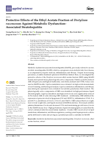 Citation | Lee, Y.-H.; Yeo, M.-H.; Chang, K.-S.; Yoon, W.-J.; Kim, H.-S.; Kim, J.; Kim, H.-R. Protective Effects of the Ethyl Acetate Fraction of Distylium racemosum Against Metabolic Dysfunction-Associated Steatohepatitis. Appl. Sci. 2025, 15, 7238. https://doi.org/10.3390/app15137238