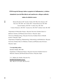 | タイトル(別表記) | CD30発現細胞をターゲットとした治療はサイトカイン刺激後の線維芽細胞のアポトーシスを誘導し、コラーゲン抗体誘導関節炎マウスの関節破壊を抑制する