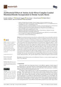 | 抄録 | Several dental materials contain silver for antibacterial effect, however the effect is relatively low. The reason for the lower antibacterial efficacy of silver is considered to be the fact that silver ions bind to chloride ions in saliva. To develop new effective silver antibacterial agents that can be useful in the mouth, we synthesized two novel amino acid (methionine or histidine)-silver complexes (Met or His-Ag) loaded with montmorillonite (Mont) and analyzed their antibacterial efficacy. At first the complexes were characterized using nuclear magnetic resonance (NMR), and amino acid-Ag complex-loaded Mont (amino acid-Ag-Mont) were characterized using X-ray diffraction (XRD) and scanning electron microscopy (SEM). The antibacterial efficacy of these materials in dental acrylic resin was then investigated by bacterial growth measurement using a spectrophotometer. As controls, commercially available silver-loaded zeolite and silver-zirconium phosphate were also tested. Dental acrylic resin incorporating His-Ag-Mont strongly inhibited Streptococcus mutans growth. This was explained by the fact that His-Ag complex revealed the highest amounts of silver ions in the presence of chloride. The structure of the amino acid-Ag complexes affected the silver ion presence in chloride and the antibacterial efficacy. His-Ag-Mont might be used as antibacterial agents for dental materials.
