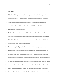 This is an Accepted Manuscript of the article: Komatsubara Y, Tachibana T, Kataoka Y, Kariya A, Furukawa C, Sato A, Naoi Y, Ando M. Application of intratympanic steroid injection as salvage therapy for idiopathic sudden sensorineural hearing loss. Auris Nasus Larynx. 2025 Jun;52(3):248-252. doi: 10.1016/j.anl.2025.03.006.