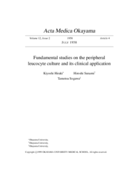 | 抄録 | With an improved method of tissue culture of peripheral leucocytes of our own design, the authors carried out systematic observations on the peripheral leucocyte culture from the normal, various kinds of leukemias, leukemoid reactions, and hypoplastic anemia. As for the culture method we have devised a method of silicon oil coating on the blood containers, a method which will least affect the cell function as compared with the conventional culture method. As the results we have found that the tissue growth in the case of peripheral leucocyte culture of normal persons ceases after six-hour culture and also we have recognized a peculiar finding, a growth like a corona-shape, in which an empty space appears in the inner part of growth area along with the lapse of time. In every leukemic case, without presenting growth area like a corona, the cell density is high and the outer zone of growth area becomes sharply demarcated as in the case with bone-marrow culture and also the growth continues even after 12 hours. At this instance we have noticed many mitoses of immature cells. Moreover, the maturation of immature cells has been observed and it has also been possible to distinguish to what type these immature cells belonged. In the leukemoid reaction no growth pattern Characteristic to the leukemia can be recognized, and at a glance it can easily be differentiated from the leukemia. In the case of hypoplastic anemia although the growth area is like that of the normal presenting a corona-like shape, the cell density is lower and the function of leucccytes is lesser than the normal. From these results we believe that the peripheral leucocyte culture is clinically useful. |