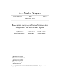 抄録 | Endoscopic biopsy is an important tool for histological diagnosis of lesions residing in gastrointestinal tracts. However, it is less useful in submucosal lesions due to the existence of normal overlying mucosa. We developed a new and safe technique for the diagnosis of submucosal tumor using Stiegmann-Goff endoscopic ligator. After removing surface mucosa to expose submucosal tissue by this method, conventional secured histological diagnosis could be performed. To determine definitive histological diagnosis, this technique is useful as well as Endoscopic Ultrasound (EUS) with fine needle aspiration biopsy and other modalities. |